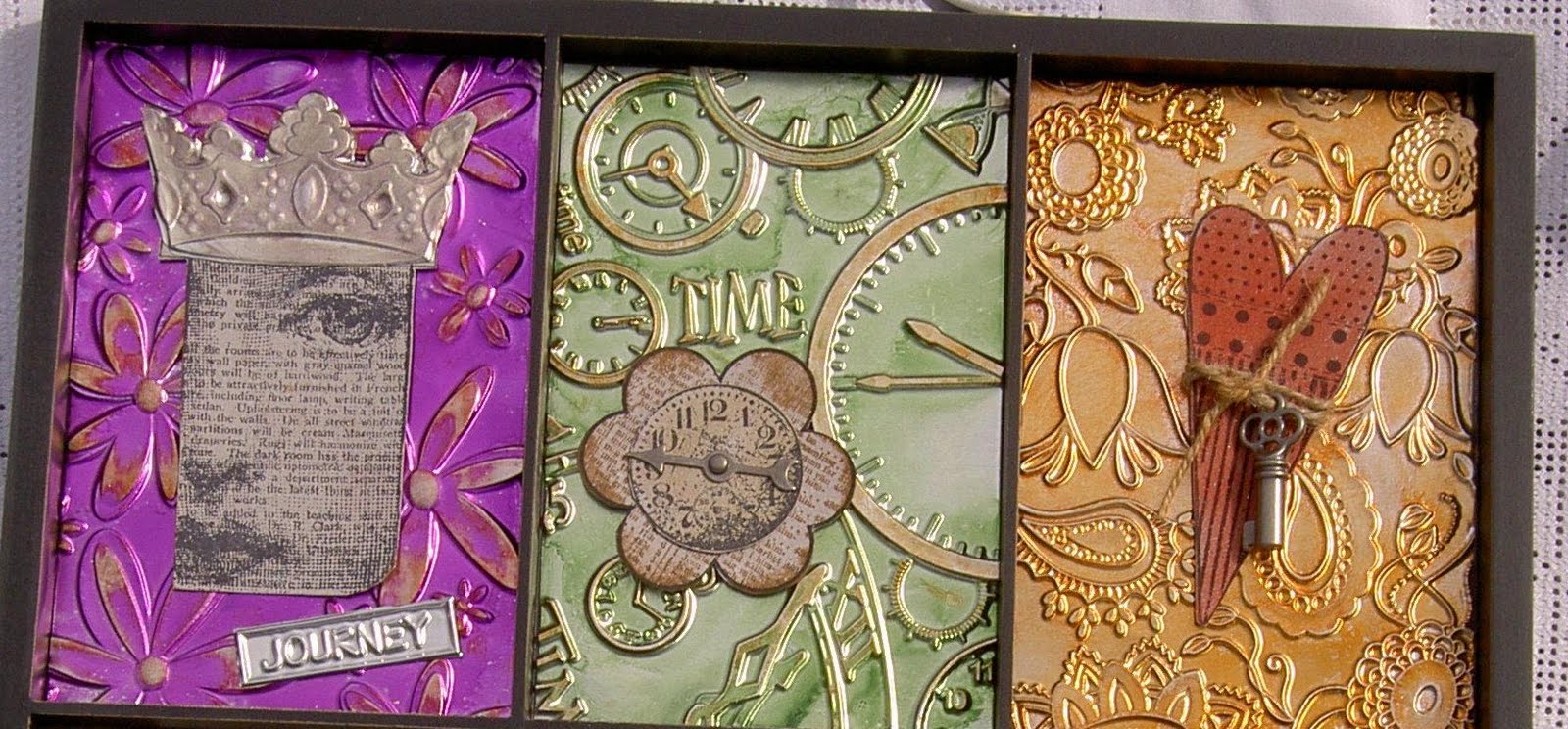 Various mediums can also be used like Kindyglitz, Crackle Paint, Diamond Dust andLiquid Pearls.
